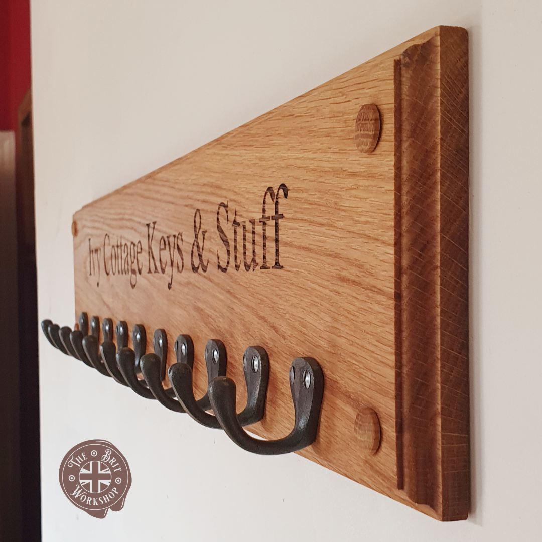 Customisable Solid Oak Key Rack with Cast Iron Hooks