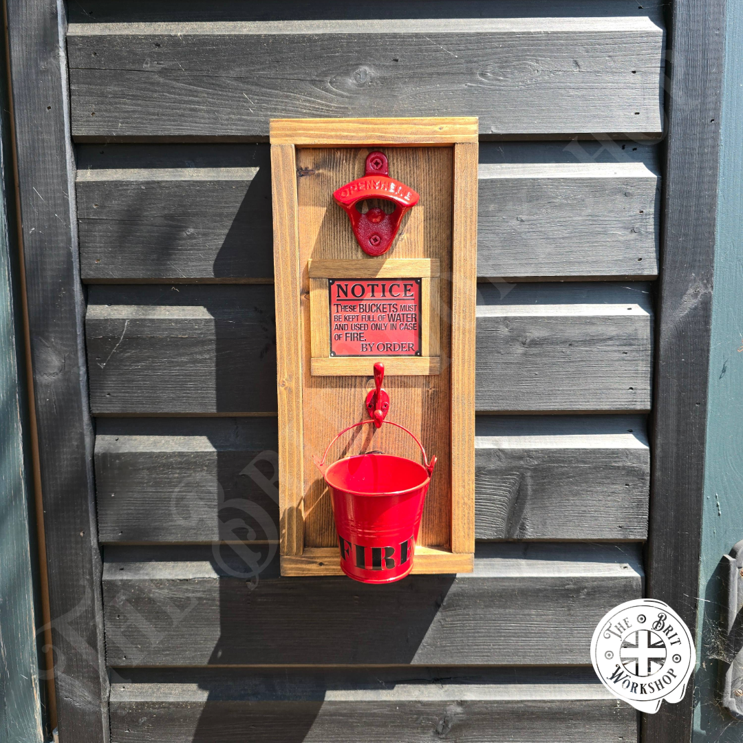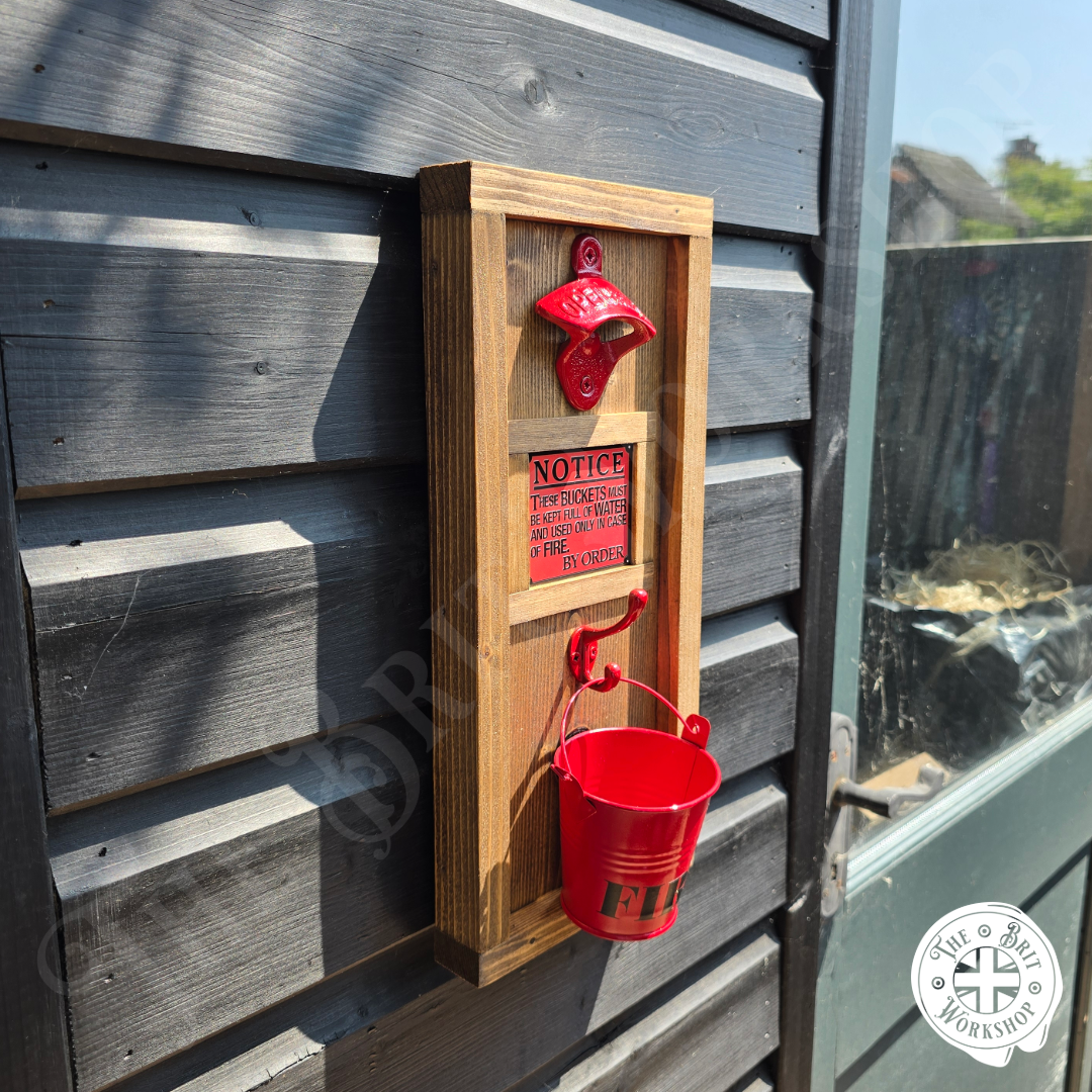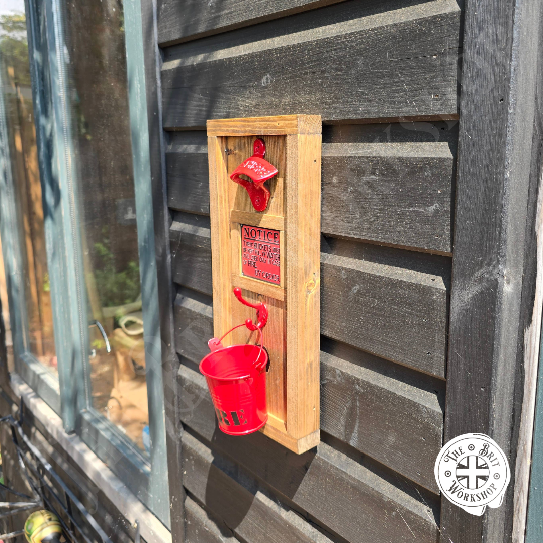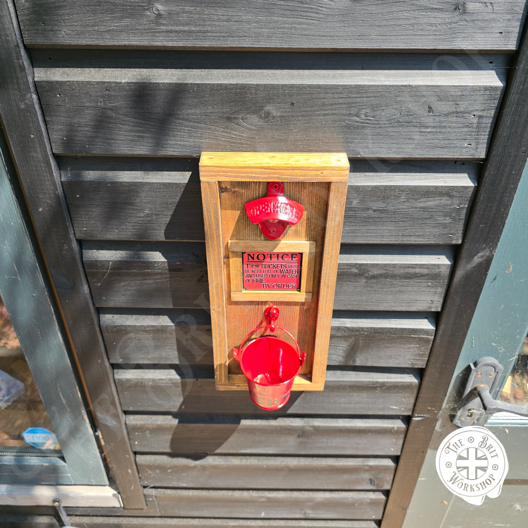 Fire bucket rustic wall mounted bottle opener