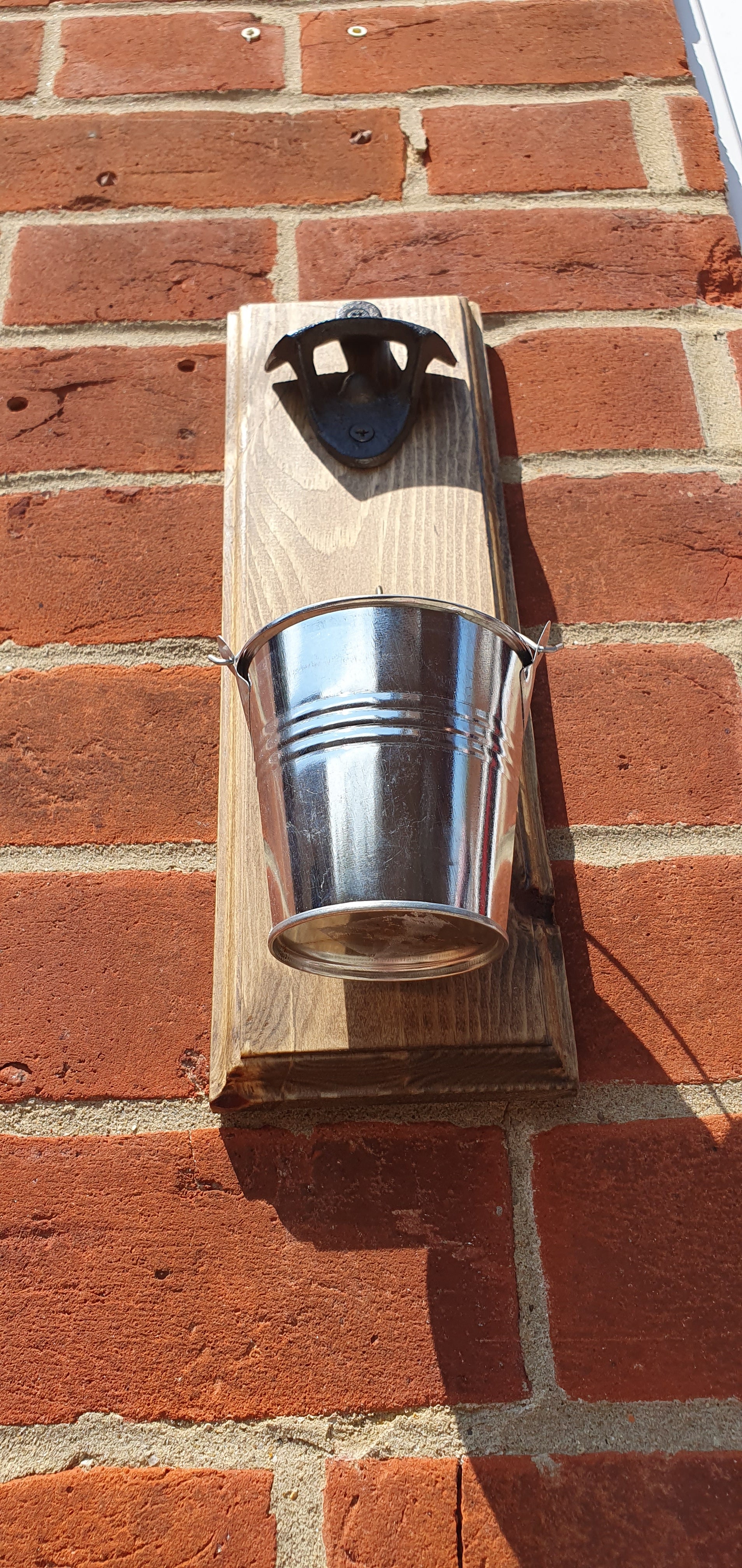 This durable and practical wall mounted bottle opener comes with a convenient Cap Catcher bucket, perfect for outside entertainment parties and barbecues. No more chasing after bottle caps, simply pop them open and let the bucket catch them. Enjoy a hassle-free and clean experience with this bottle opener with cap catcher bucket.